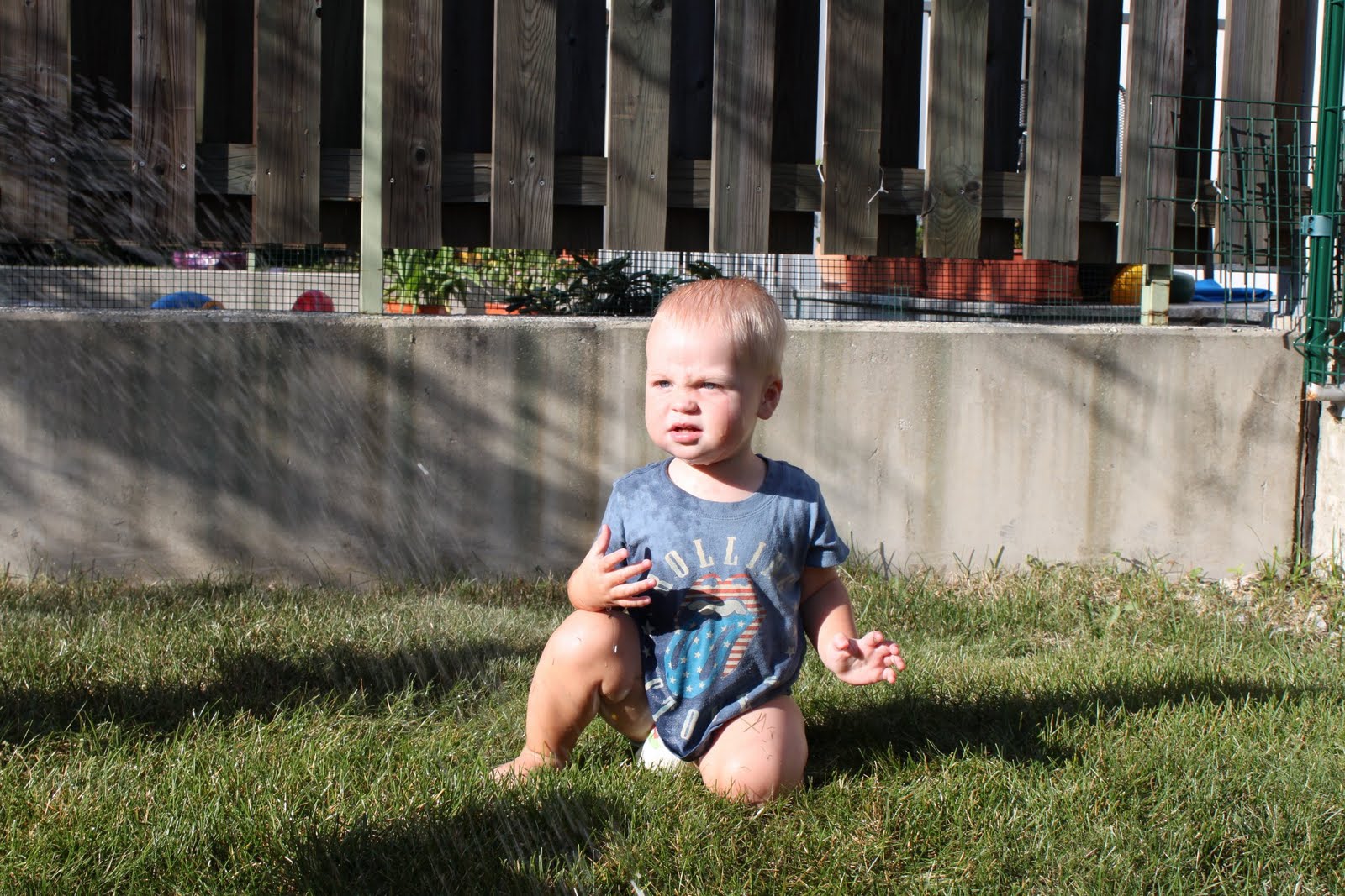 Contemplating running through the sprinkler.